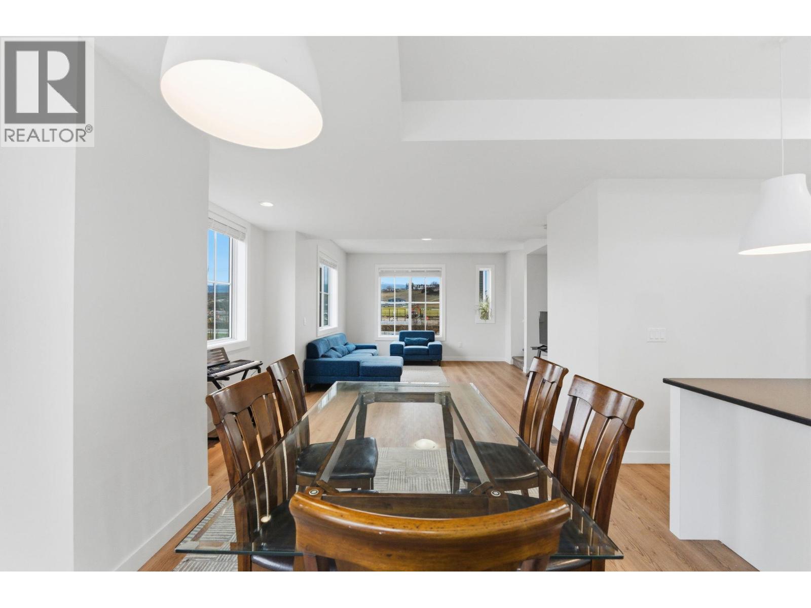 Welcome to Glen Park Row, nestled in the highly desirable North Glenmore community. This 2023-built, upgraded 4-bedroom, 3-bathroom END-UNIT townhome offers a preferred, quiet location within the complex, set back from the main road for added privacy and tranquility. Enjoy hill-side and park views along with abundant natural light from extra windows throughout. With only one shared wall, this home feels bright, airy, and private. Offering 1,500 sq. ft. of thoughtfully designed living space, the open-concept main floor features laminate flooring throughout, stainless steel appliances, and a gas range. The kitchen is enhanced with a premium pantry rollout system and ample cabinet space. Upstairs, upgraded laminate flooring continues throughout. The spacious primary bedroom includes a walk-in closet and large ensuite, while two additional bedrooms, laundry, and a 4-piece bathroom complete the top floor. The entry level features a fourth bedroom, added as an upgrade ideal for guests, a home office, or extended family. Step outside to your private, fenced outdoor space, perfect for pets, kids, or quiet relaxation. A large double garage provides generous parking and additional storage. Ideally located just minutes from downtown Kelowna, UBC Okanagan, Kelowna International Airport, and close to parks, schools, shopping, and transit, this home delivers modern comfort in one of Kelowna’s most sought-after neighbourhoods. Pet friendly! Don’t miss this one! (id:4069)